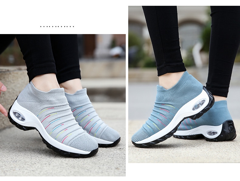 The uppers of this Women Fly-knit Breathable Casual Height Increasing Shoes are knitted like socks, comfortable and suitable for the foot, providing super freedom and comfort. Elastic textile upper with good stretch makes these women walking shoes breathable and keeps your feet comfortable.