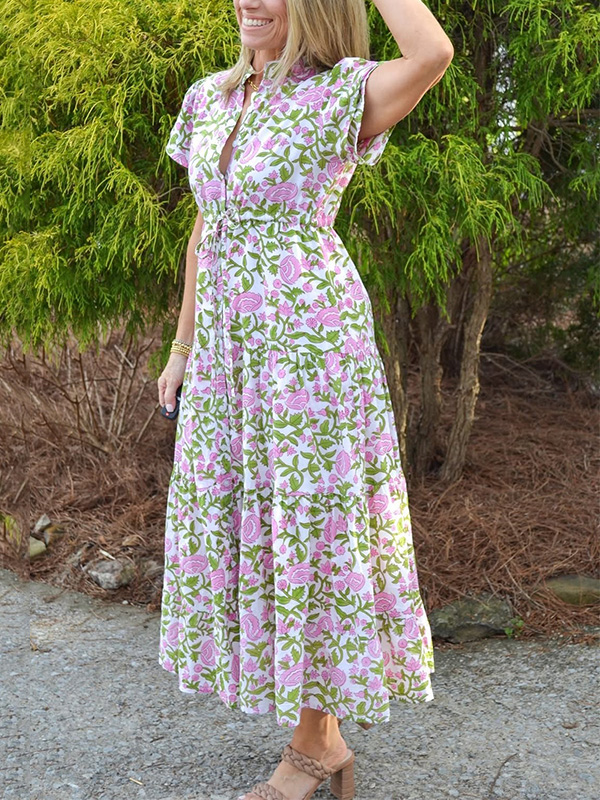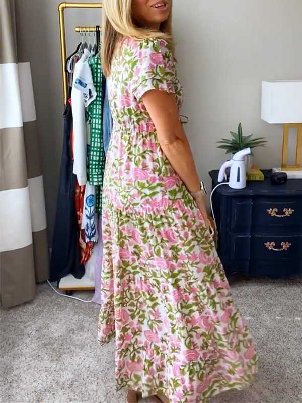 Timeless Elegance: Floral Print Elastic Waist Dress