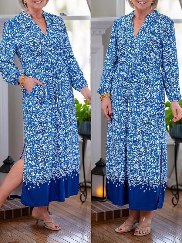 Timeless Elegance: V-Neck Printed Slit Dress