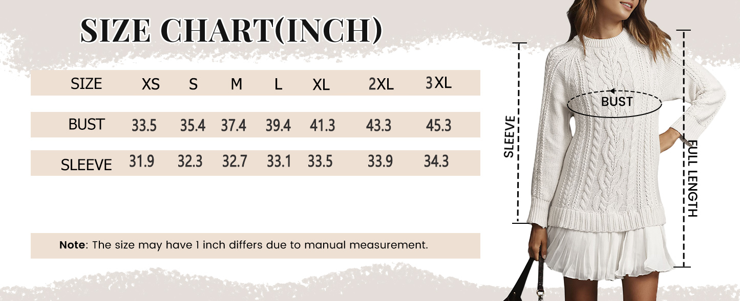 Machine wash cold separately with similar colors; Lay flat to dry; Do not bleach; Do not tumble dry Womens Sweater Mini Dress Oversized Chunky Cable Knit Short Dresses 2025.