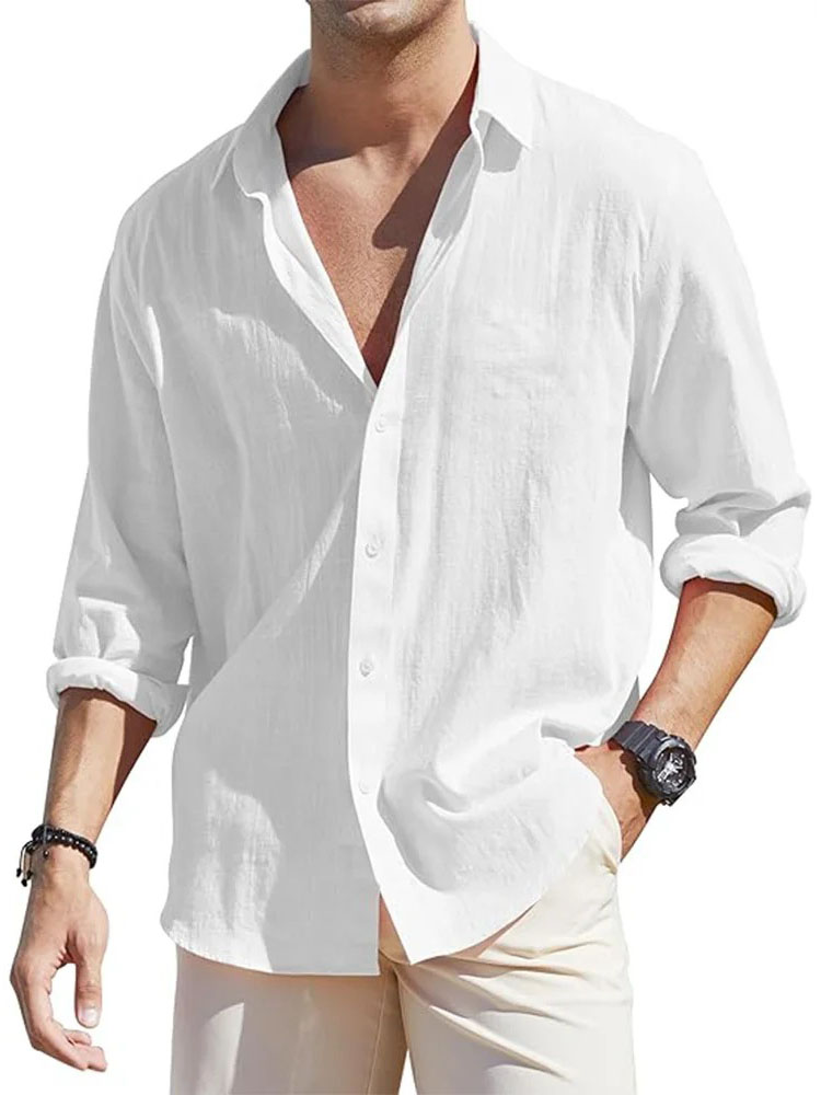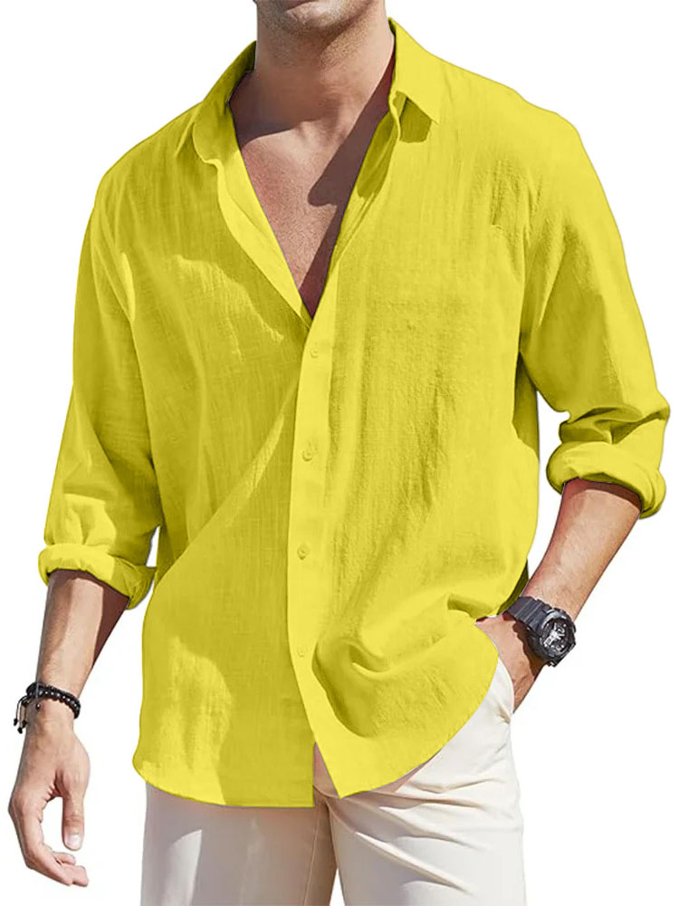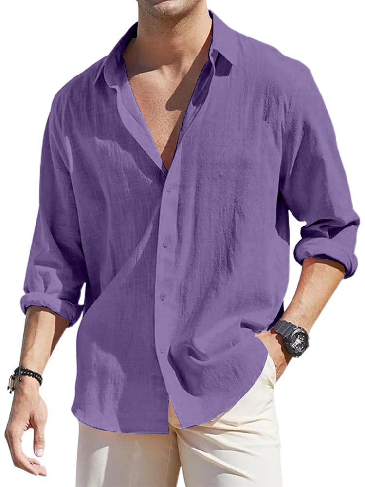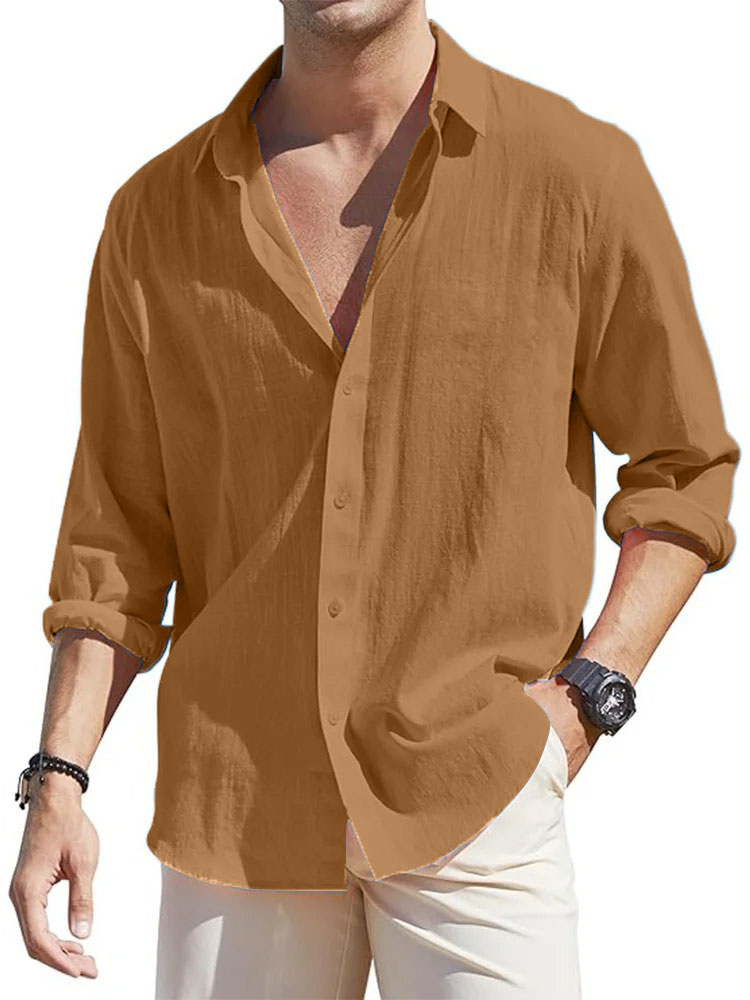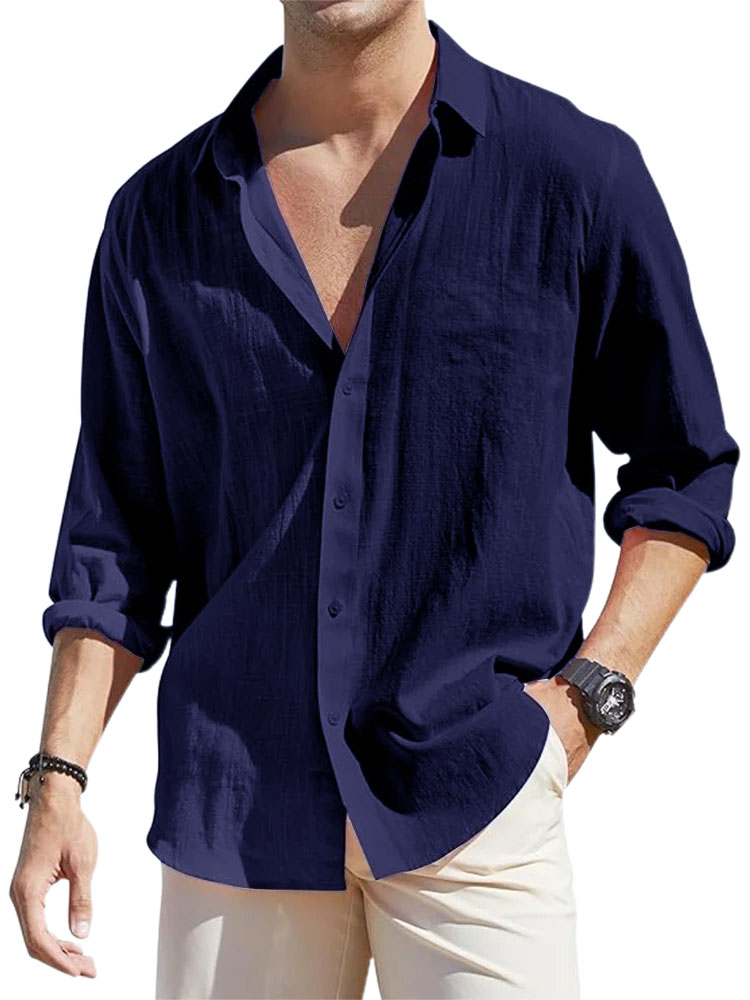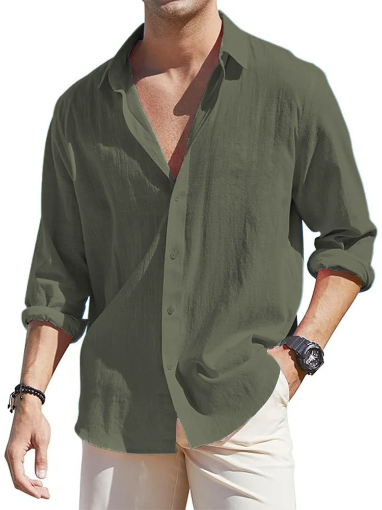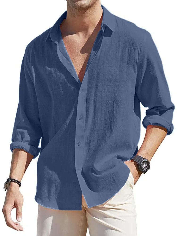 • Men's Casual Loose Basic Cotton And Linen Long-sleeved Shirt