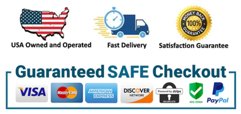 The Checkout Process is Guaranteed to be 100% Safe and Secure with Visa, Mastercard, AMex, Discover, Apple Pay or PayPal.