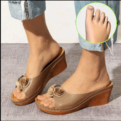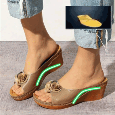 2023 Women Comfy Vegan Leather Solid Flower Strap Slide Wedgesare specially developed, designed by ARCOFY TEAM, with a three arch support design and a soft sole to keep your feet comfortable, health safe, and style on point!
