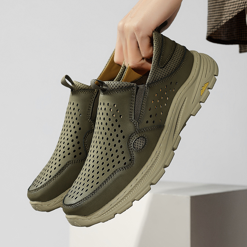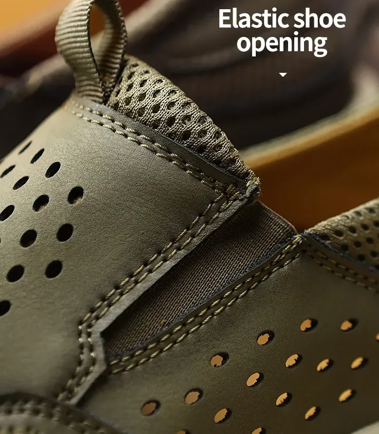 Expertly handcrafted from genuine cowhide leather, these shoes feature precision-cut perforations for enhanced airflow. The openwork design keeps your feet cool and dry, while the classic leather texture adds a touch of timeless style. Perfect for all-day wear in warm weather.