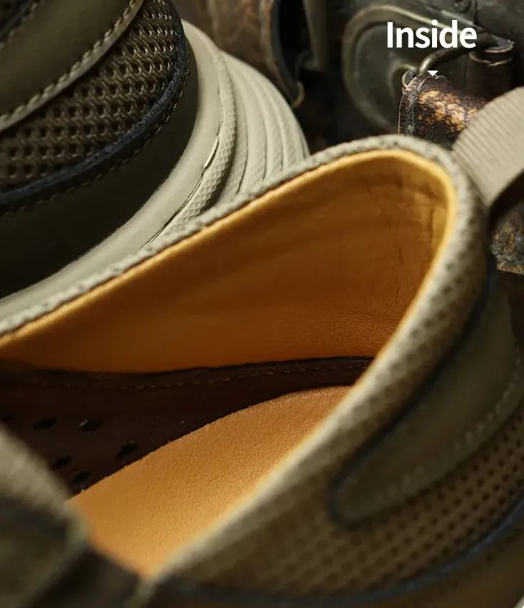 The interior features soft, supple calfskin leather that ensures all-day comfort without rubbing or irritation. Mesh panels on both sides promote airflow, keeping your feet cool and dry throughout your walk.