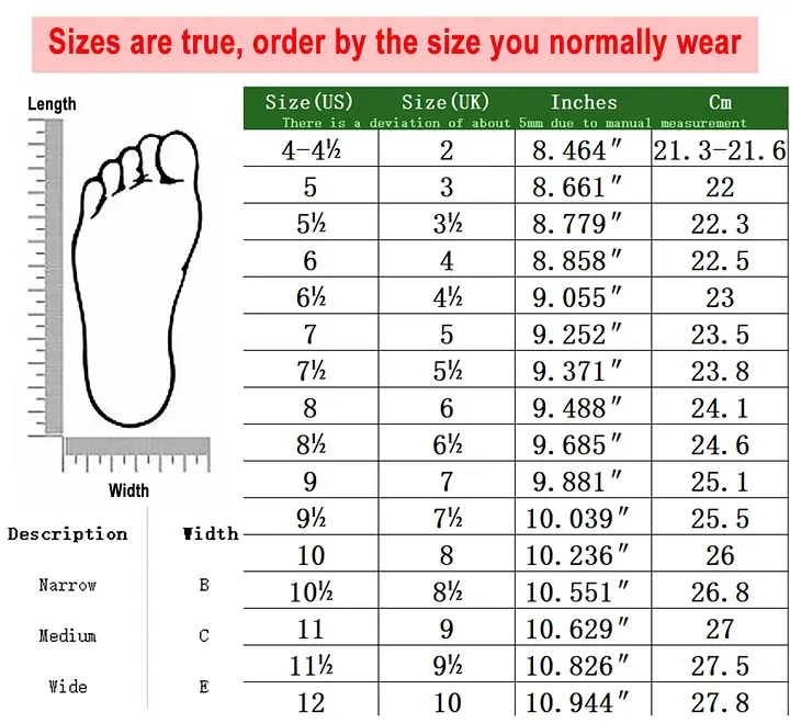 Please note that due to human factors, there may be some errors in the size. It is recommended that you measure your size yourself before placing an order.