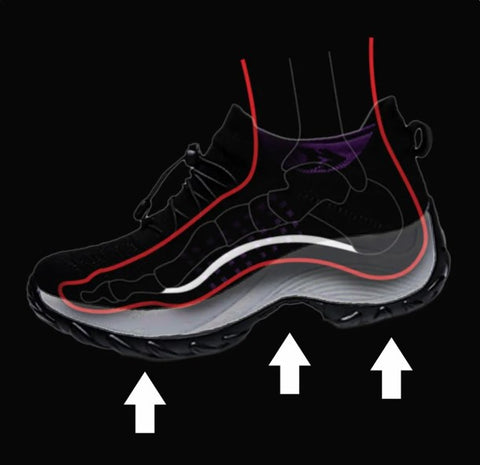 Premium Orthopedic insoles with anatomical arch support re-align the foot and body, helping ease pain on the foot and heel, all the way up to your knees, hips, and lower back.