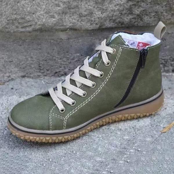 Elevate your casual style with these women's lace-up flat ankle boots designed for warmth and comfort. The perfect blend of practicality and fashion, these boots feature a cozy interior that keeps your feet snug in colder weather. The lace-up design adds a touch of versatility and style, allowing you to adjust the fit according to your preference. Whether you're running errands or enjoying a leisurely stroll, these ankle boots effortlessly combine comfort and casual elegance. Step out confidently and embrace the coziness of these lace-up flat ankle boots that are perfect for your everyday adventures.