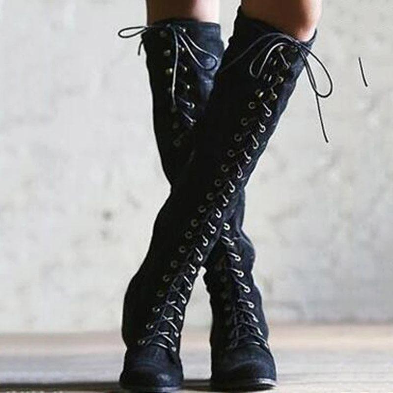 Boot Type: Knee High BootsFashion Element: Stitching, StuddedClosure Type: Lace UpToe Shape: Round ToeBoot Height: KneeUpper Material: PUInsole Material: PUHeel Type: Square HeelSeason: Spring, Autumn, WinterColor: Gray, Black, Brown
