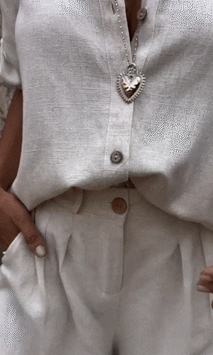 This shirt has a classic lapel design that adds elegance to casual styles, while the mid-length sleeves provide comfort and coverage. Pair it with the matching shorts for a stylish and coordinated look.