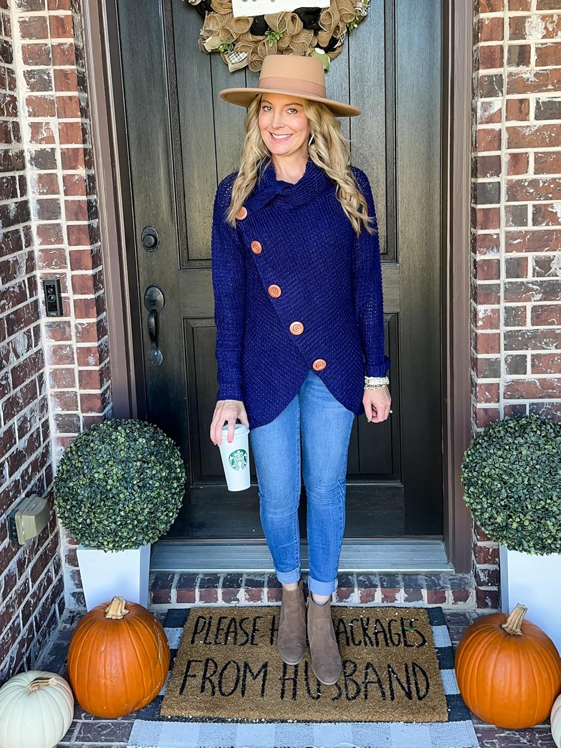 Decorative button casual pullover sweaters, the perfect combination of comfort and style.