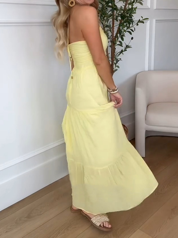Introducing our Halter Vacation Dress, designed for the modern woman who values sophistication and style.
