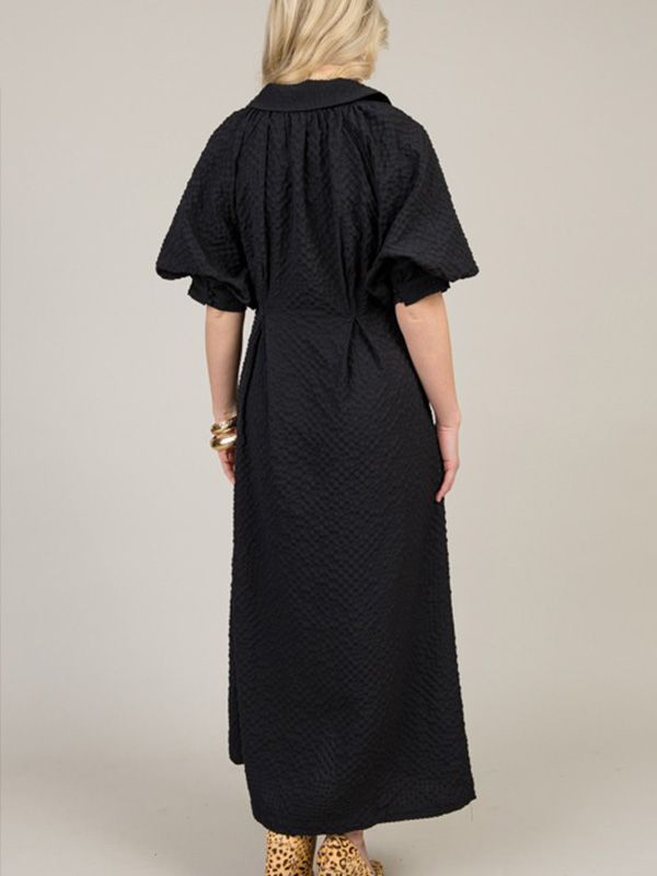 Introducing our Lapel Button Bubble Sleeve Cotton Linen Dress, designed for the modern woman who values sophistication and style. This dress features a stunning print and elegant maxi length, making it perfect for any occasion.