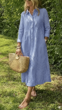 The Long Sleeve Striped Lapel Button Down Dress is designed for the modern woman who cares about sophistication and style. The elegant Maxi long dress is perfect for any occasion.