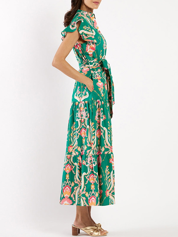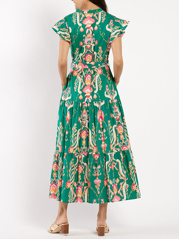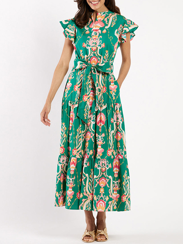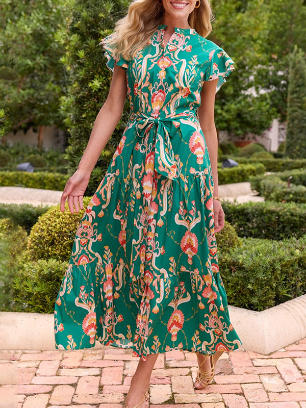 Timeless Elegance: Ruffle Button Tie Printed Dress