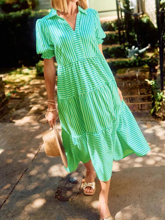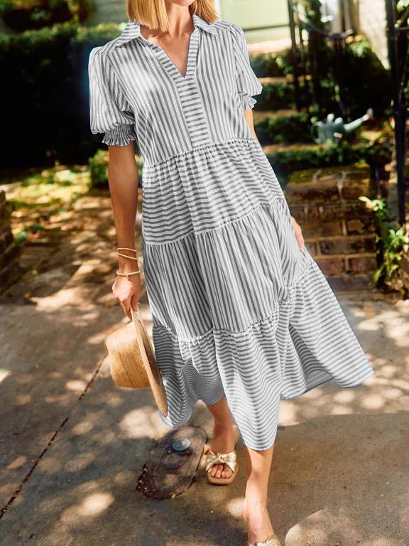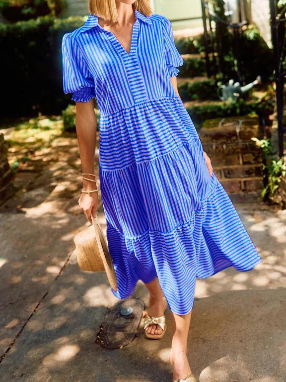 🔥 Two for $69.99 Only + free shipping🔥Special price of $37.99( Taxes included ) for a limited time, if the price goes back to$75.98 it means the event has ended!!! Don't miss out!The V-Neck Pleated Short Sleeve Striped Shirt Dress is a delightful blend of sophistication and sweetness that's perfect for any occasion. Falling gracefully at midi-length, this dress exudes timeless charm, making it an ideal choice for both casual outings and special events. The dress features a classic collar, adding a touch of elegance, while the smocked short puff sleeves provide a playful and feminine twist.Features:Featured pocketsPleated short sleevesFolded collarLayered skirtCottonWashing instructions:Machine washableMachine wash coldHang to dryIron if necessarySIZE CHART:🔒 100% Risk-Free Purchase🔥If you bought it and felt that it is not for you, don't worry. Just shoot us a message and we will make it right by offering you a replacement or refund. 100% Simple Risk-Free process.* LIMITED stock, Click ADD TO CART before stock runs out!