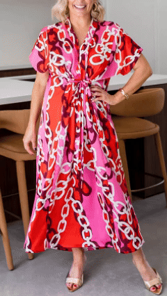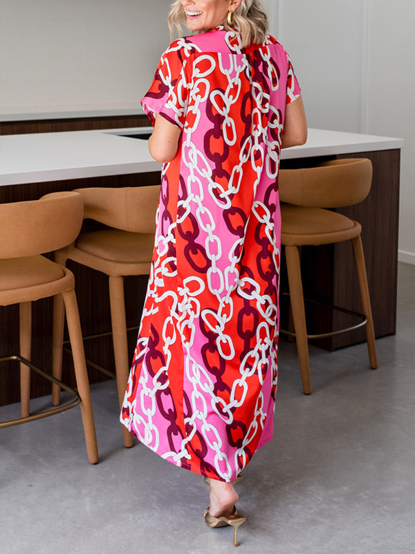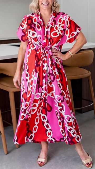Introducing our V Neck Printed Satin Dress, designed for the modern woman who values sophistication and style. This dress features a stunning print and elegant maxi length, making it perfect for any occasion.