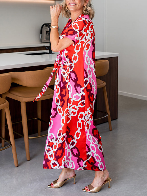 Timeless Elegance: V Neck Printed Satin Dress