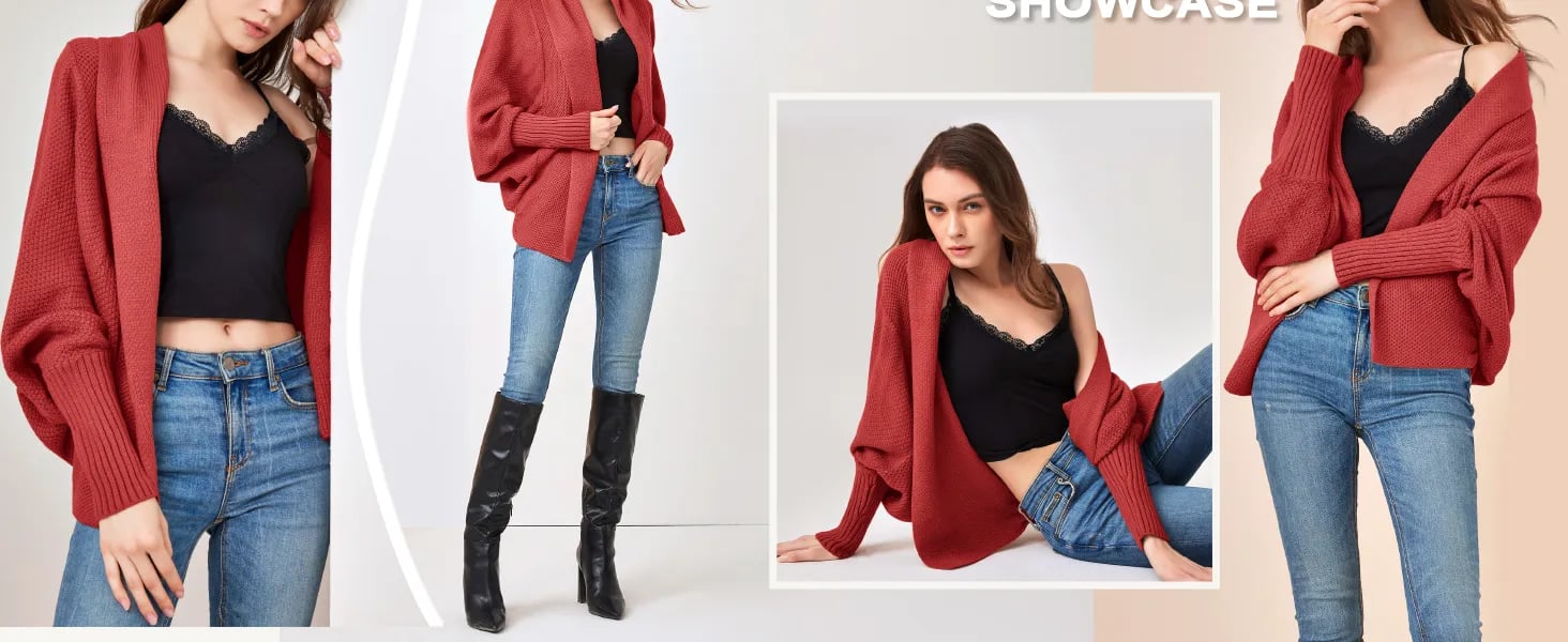 This knitted cardigan has a loose fit and unique dolman sleeve detail design. It is fashionable and cute and will keep you warm in autumn and winter.