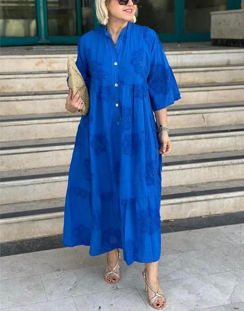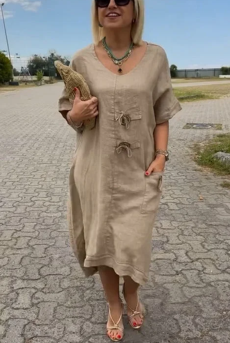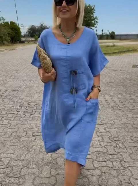CLEARANCE🔥Linen dress with buttons and a round neckline