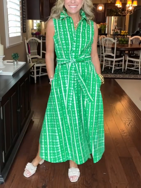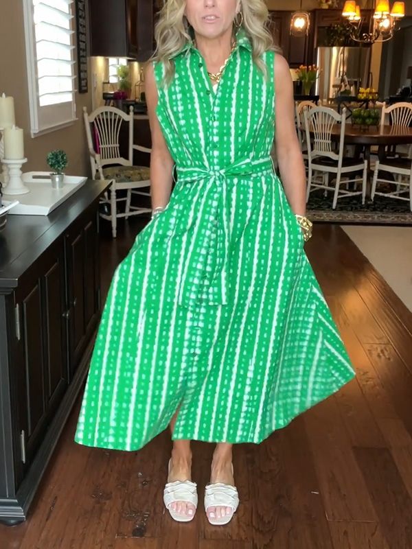 New🔥 Lapel Button Printed Waistband Dress