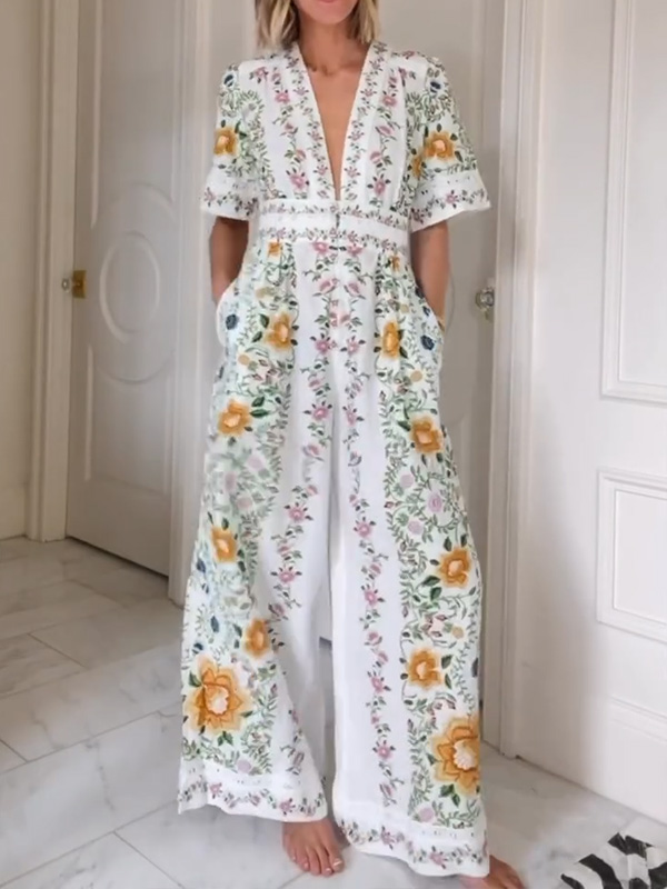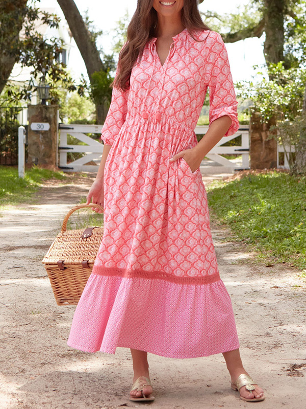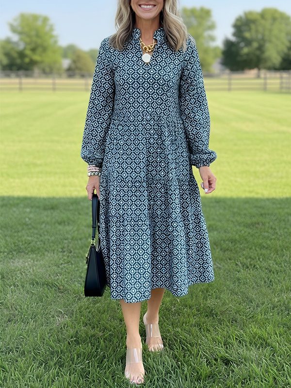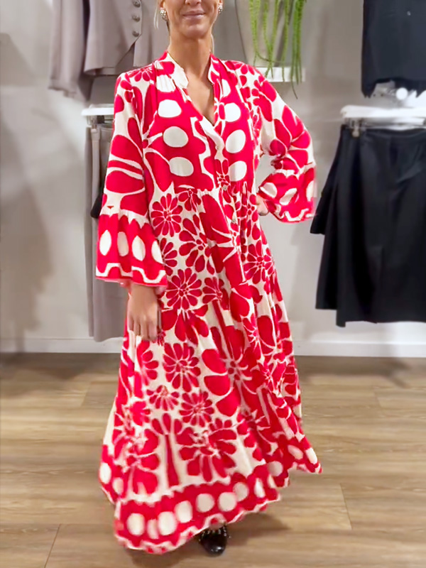 NEW🔥 V Neck Vintage Printed Dress