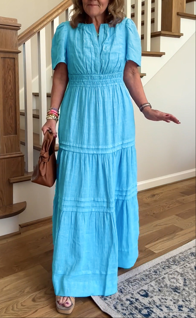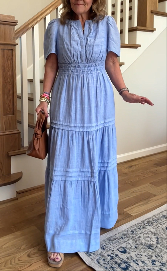 CLEARANCE SALE🔥100% Linen Tiered Maxi Dress