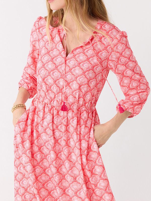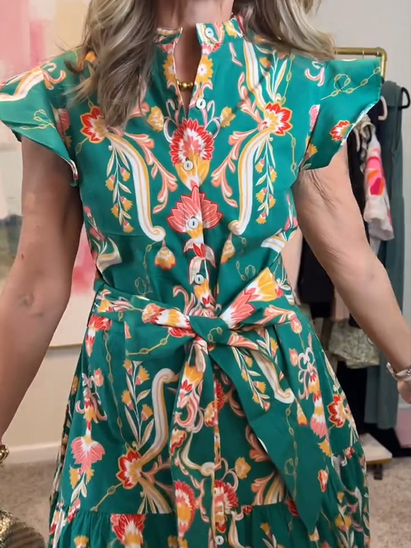 NEW🔥 Ruffle Button Tie Waist Printed Dress- Tax Free