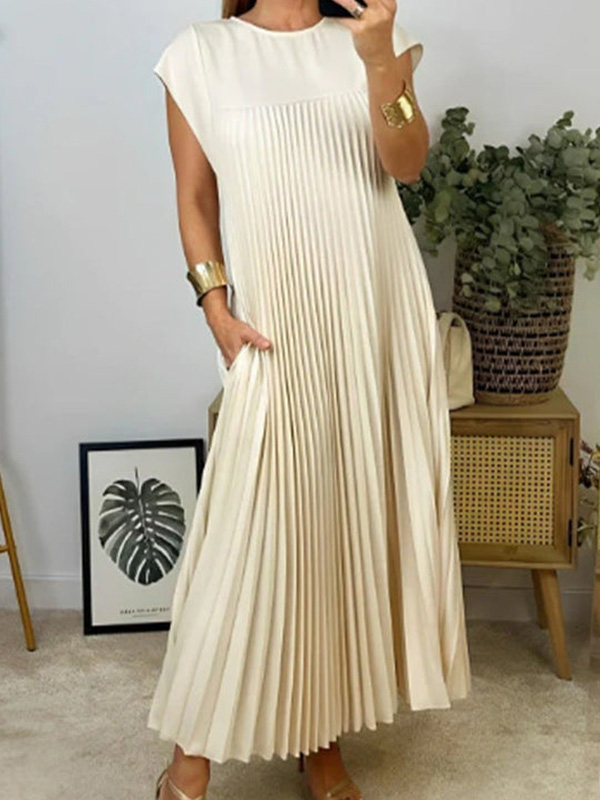 CLEARANCE🔥 Round Neck Casual Pleated Dress