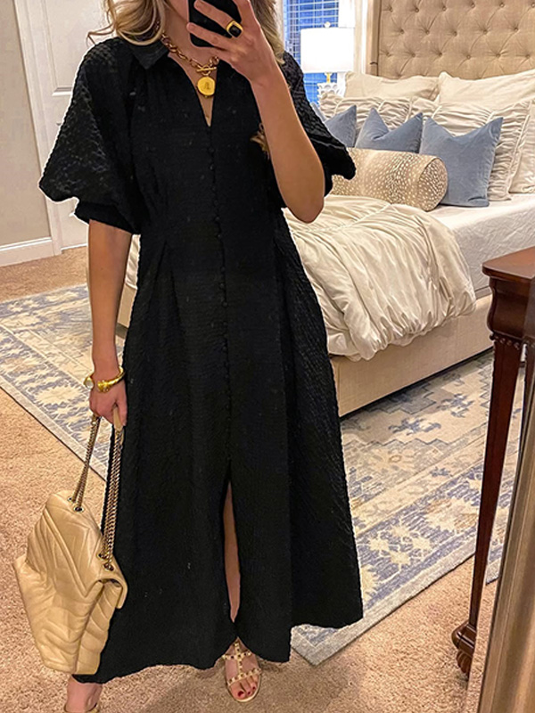 NEW🔥 Lapel Button Bubble Sleeve Cotton Linen Dress- Tax Free